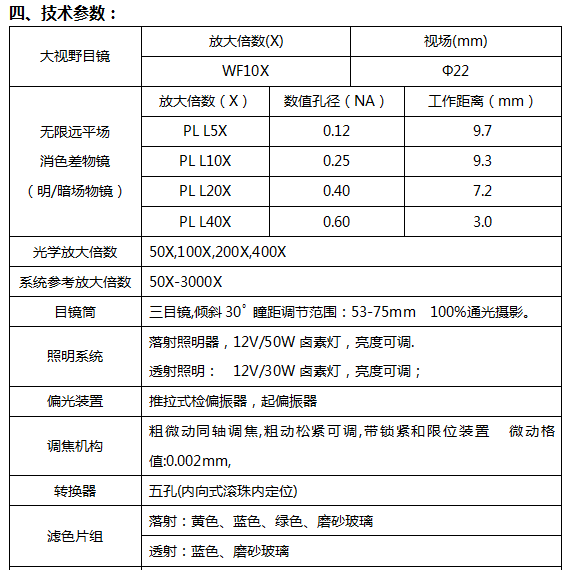 粗微動(dòng)同軸調(diào)焦機(jī)構(gòu),粗動(dòng)松緊可調(diào),帶限位鎖緊裝置,微動(dòng)格值:2μm。